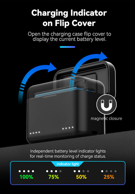 The charging box supports PD 3.0 fast charging for a very short charging time. With a suitable adapter of 12V/2A or higher, your batteries will be fully charged in about 65 to 75 minutes. This fast-charging feature means you spend less time waiting and can use your camera more often.
