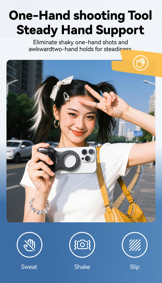 This magnetic grip gives your phone the feel and hold of a traditional camera. The ergonomic design provides a firm and comfortable grip, which helps in taking more stable photos and videos. This reduces vibrations and motion blur for sharper images.