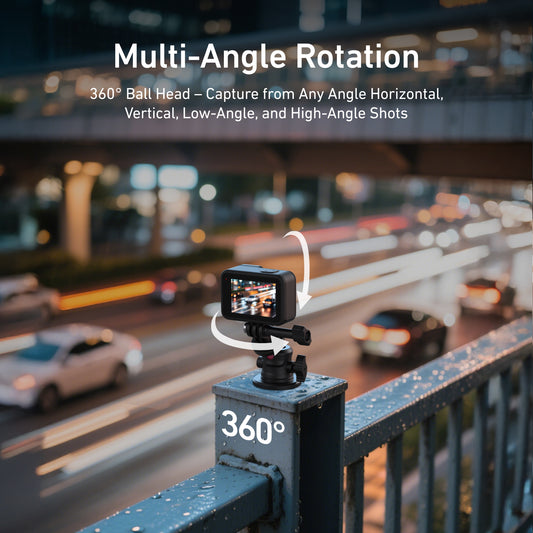 The built-in ball head gives you the freedom to aim your action camera exactly as you wish. You can rotate the camera 360 degrees and tilt it to find the ideal recording angle. This makes it easy to create creative and dynamic shots from different perspectives.