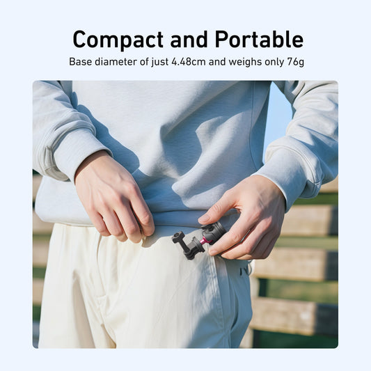 With dimensions of just 4.5 x 4.5 x 8.5 cm and a weight of 100 grams, the mount is very compact. You can easily take it with you in your bag or even in your pocket. This makes it an ideal accessory for travel or for shooting on the go.