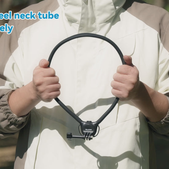 With the Telesin Neck Mount, you can easily film from a first-person view (POV). This is a great solution for making vlogs, tutorials, or recording activities where you want to keep your hands free. The neck support is made of soft silicone and plastic, making it comfortable to wear. The mount provides a stable base for your camera or phone, resulting in smooth footage.
