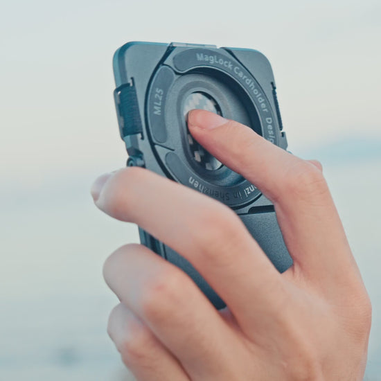 The Ulanzi ML25 MagLock is a magnetic card holder and phone stand in one for your smartphone. Made of carbon and aluminum, you can easily attach this holder to your phone via MagSafe. The holder offers space for cards, has an extra storage compartment, and a fold-out stand.